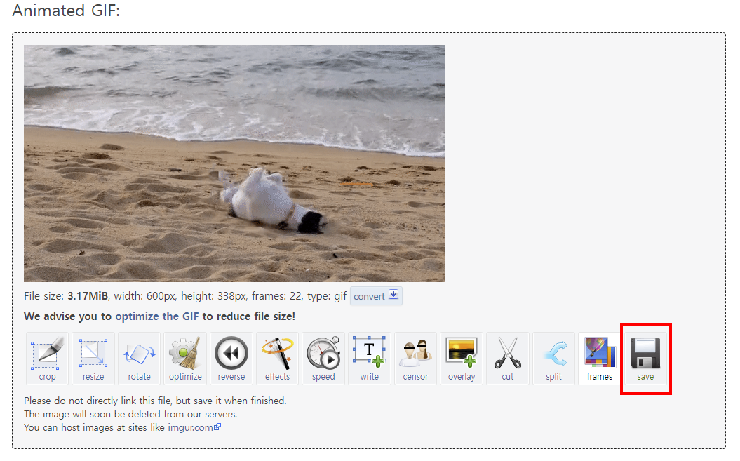 아래로 스크롤하면 편집된 GIF 파일을 볼 수 있습니다.