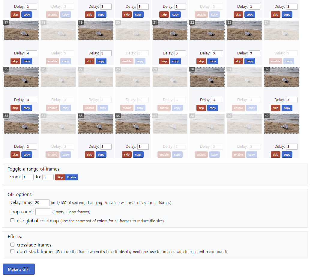 동작을 Skip 한 후에 Make a GIF를 눌러주고 Save를 누릅니다.
