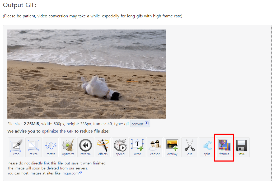 Frames를 눌러주면 GIF Maker로 이동됩니다.