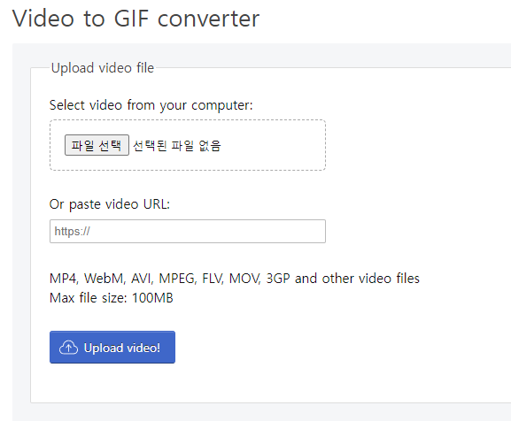 비디오/영상을 GIF파일로 변환하여 주는 사이트로 별도의 프로그램 설치 없이 온라인으로 편리하게 사용할 수 있습니다.